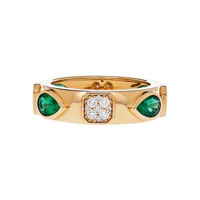 Anel aliança inteira em ouro amarelo 14kt. Esta aliança possui esmeraldas 1.46ct em lapidação brilhante. *Essa peça não pode ser ajustada.