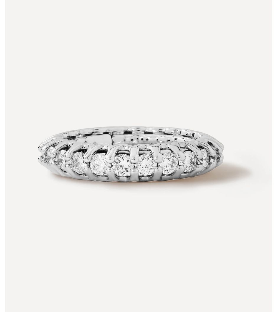 Anel aliança stretch diamond large band em ouro branco 18kt. Esta aliança possui diamantes 2.00ct em lapidação brilhante. *Essa peça aumenta em um tamanho.
