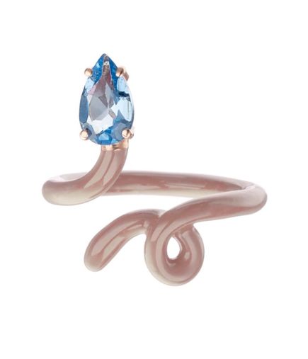 Anel Bea Bongiasca baby vine warm taupe enamel em ouro amarelo. Este anel possui topázio azul em lapidação gota. *O valor do produto inclui as taxas de importação.