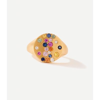 Anel de dedinho pinky ring de ouro com safiras rainbow e diamantes