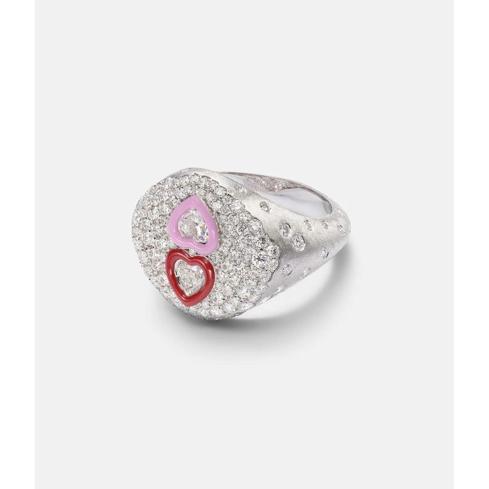 Anel pinky ring heart signet em ouro branco 18kt. Este anel possui enamel e pavê de diamantes 1.700ct em lapidação brilhante.*Essa peça não pode ser ajustada.