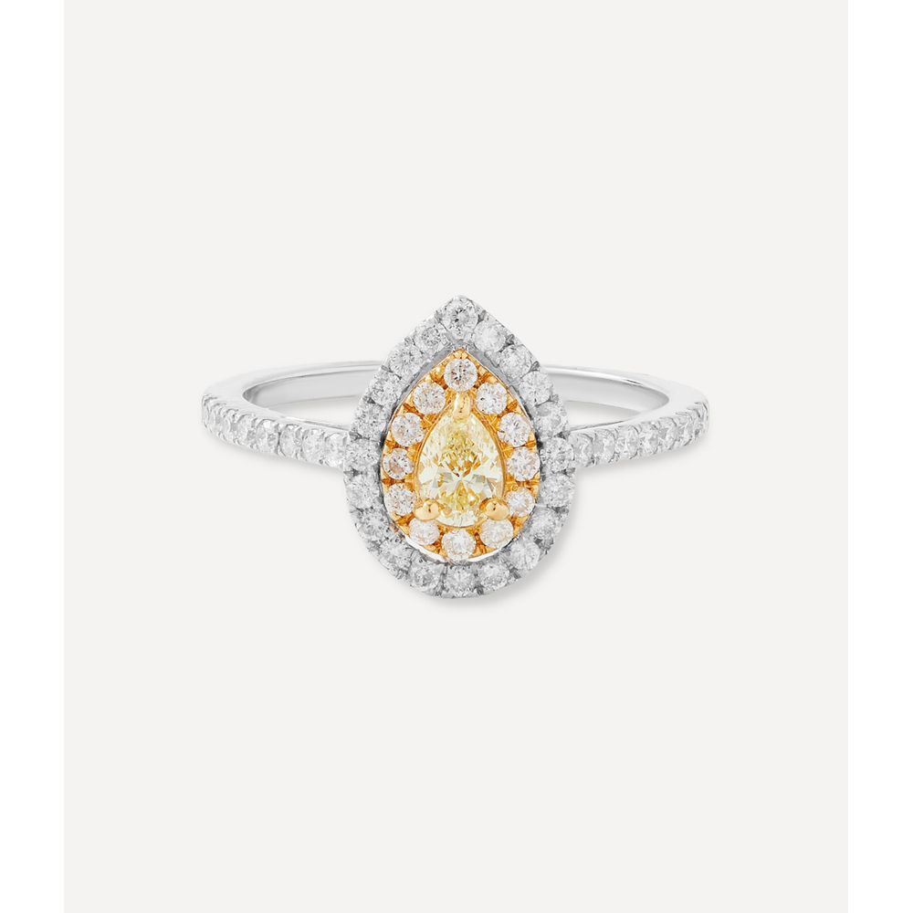 Anel solitário drop fancy yellow em ouro branco 18kt. Este anel possui diamantes incolor 0.470ct e diamantes yellow fancy 0.240ct em lapidação gota.