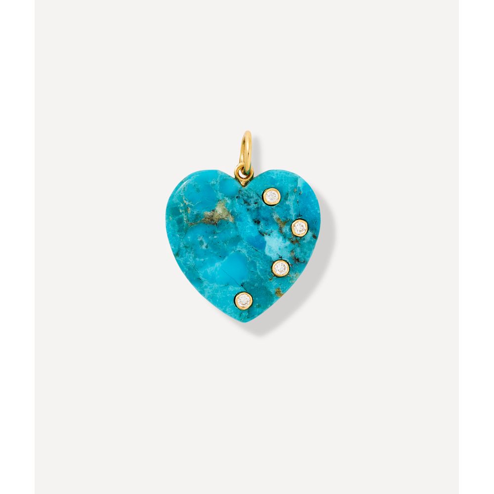 Berloque para colar call me different. Este pingente é feito em turquesa com lapidação de coração. Possui contra argola em ouro 14kt e brilhantes 0.18ct.