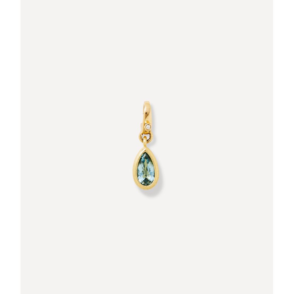 Berloque para colar hard brush em ouro amarelo 14kt. Este pingente possui água marinha 1.52ct em lapidação gota. Tem clasp como contra-argola.