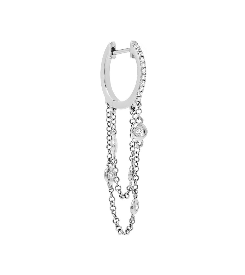 Brinco argola chain único de ouro branco com brilhantes BR101058 - BRINCO UNICO |
