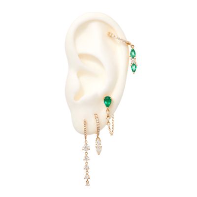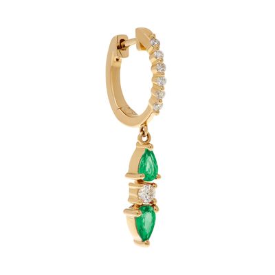 Brinco de argola único em ouro amarelo 14kt. Esta argolinha possui safiras rosa 0.47ct em lapidação gota e diamantes 0.19ct em lapidação brilhante. Tem diâmetro de 10.7mm. *Além do uso nos furos do lóbulo, esta argola também pode ser usada como piercing helix.