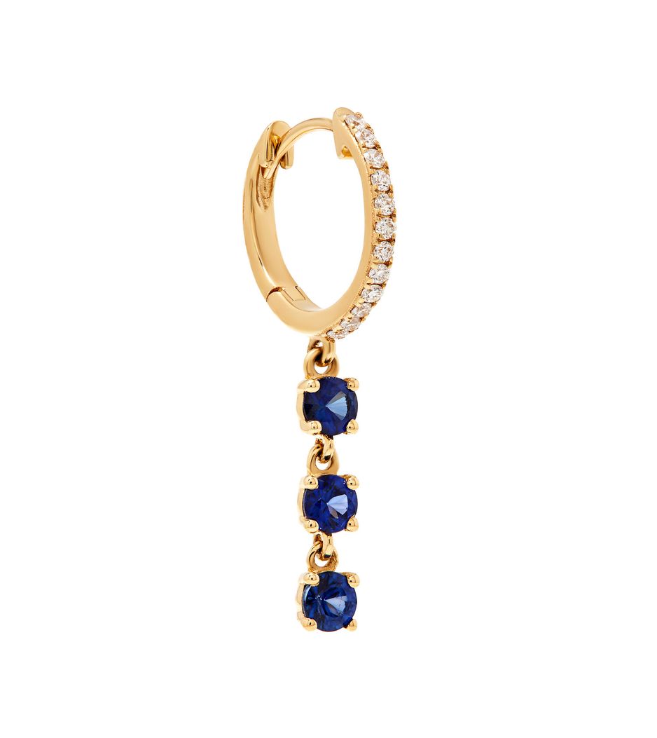 Brinco argola único huggie triple de ouro com safiras e brilhantes - BR200581 - BRINCO UNICO