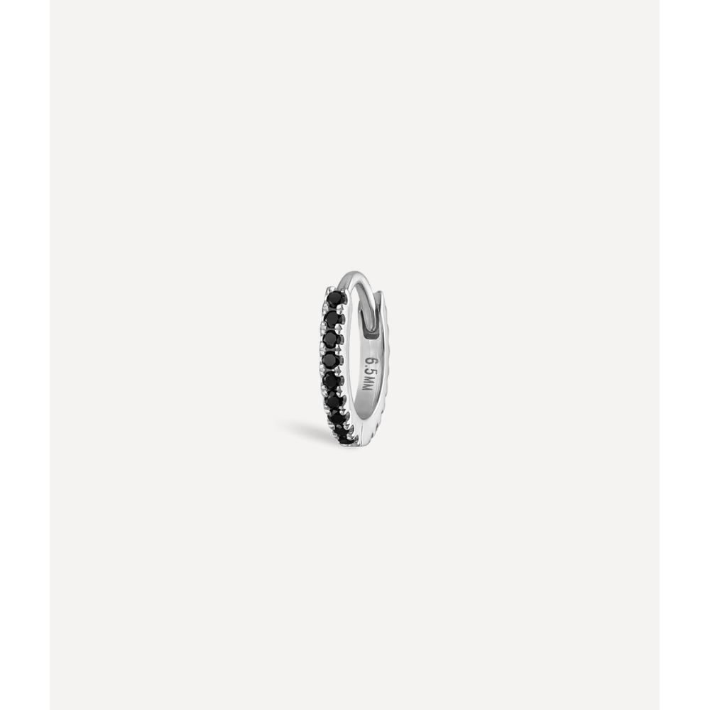 Brinco de argola Maria Tash black diamond eternity hoop em ouro branco 18kt. Esta argola possui 5mm de diâmetro e fecho em clique.*Produto com venda exclusiva em nossas lojas. Entre em contato conosco para ver mais.