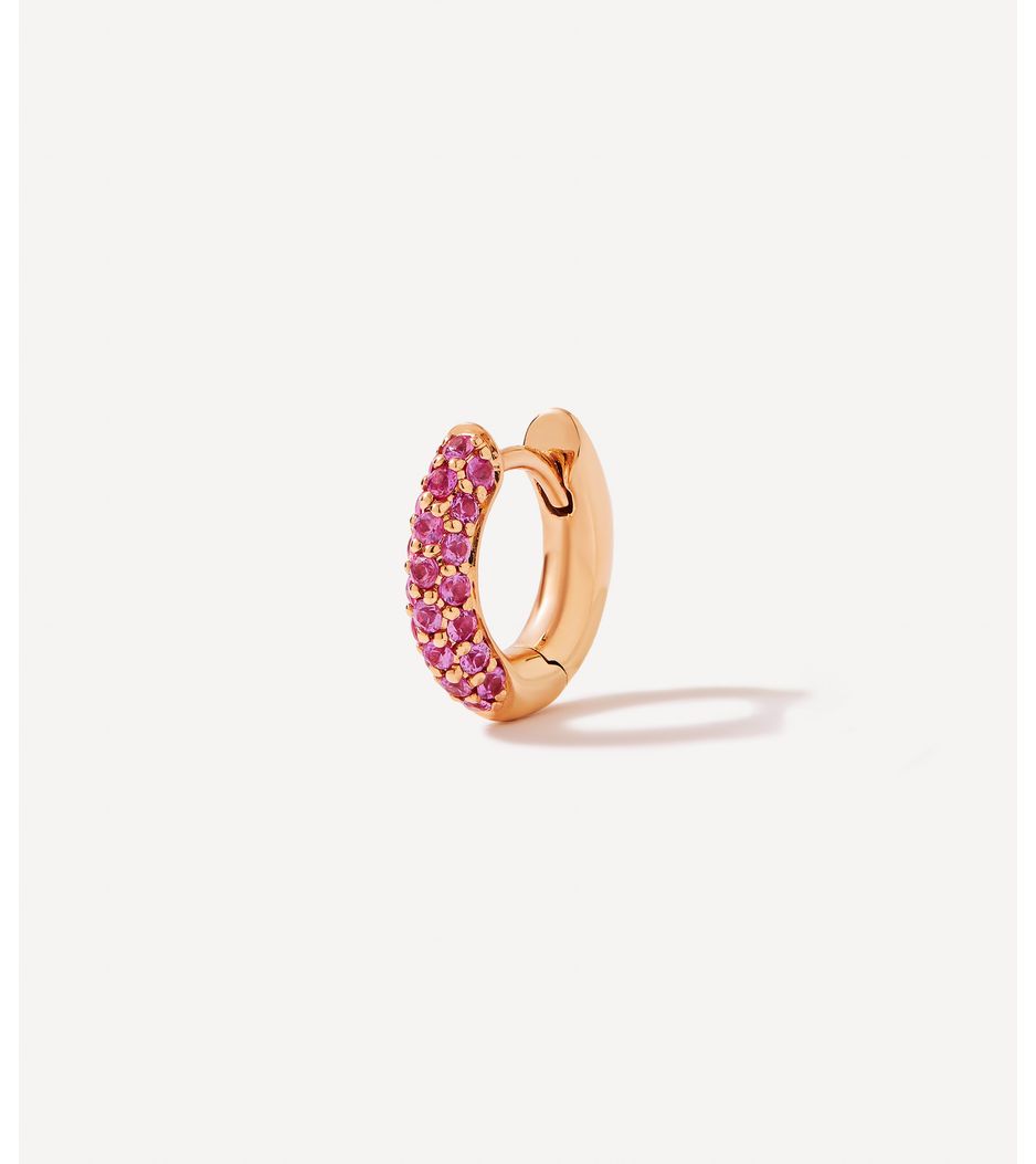 Brinco argola único pave stoned hoop de ouro rosa com safiras rosa - BR300337 - BRINCO UNICO