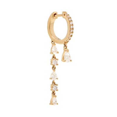 Brinco de argola único the fancy diamond jumbo huggie em ouro amarelo 14kt. Esta argolinha possui diamantes 0.71ct em lapidações brilhante, gota e oval. Tem diâmetro de 10mm.