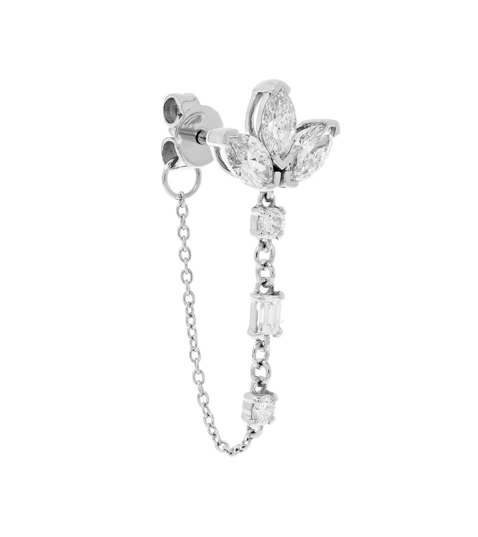Brinco chain único BW gipsy lótus em ouro branco 14kt. Este chain possui diamantes 0.75ct em lapidações brilhante, baguete e navete.