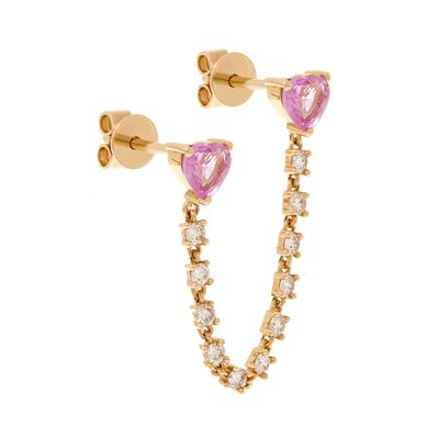 Brinco chain único em ouro amarelo 14kt. Este brinco possui diamantes 0.66ct em lapidações brilhante e baguete.
