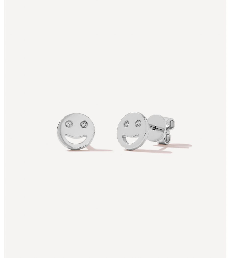 Brinco stud diamond happy face em ouro branco 14kt. Este brinco possui diamantes 0.04ct em lapidação brilhante.