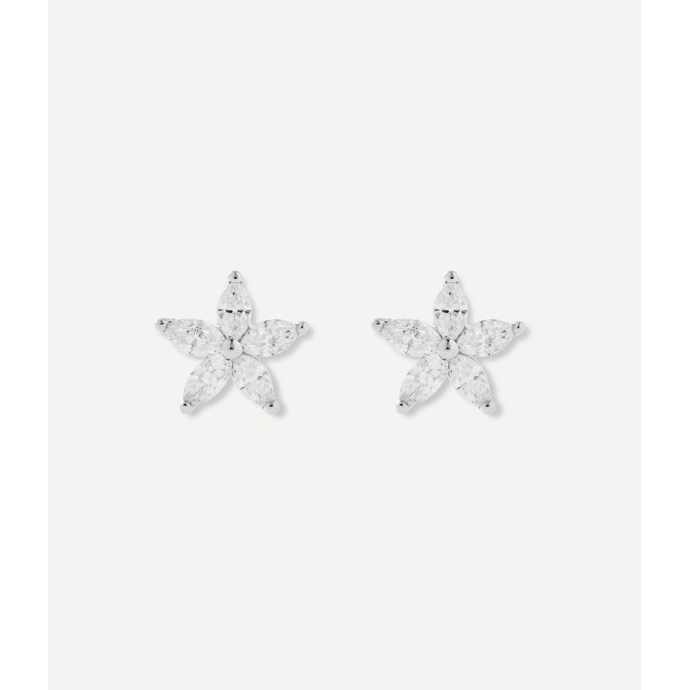 Brinco stud flower em ouro branco 18kt. Este brinco possui diamantes 0.230ct em lapidação navete.
