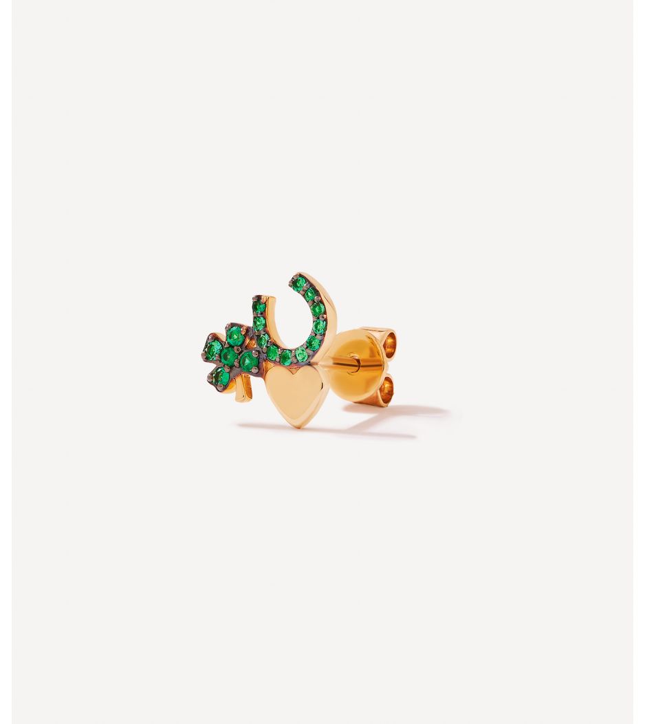 Brinco stud único lucky de ouro com esmeraldas - BR201170 - BRINCO UNICO