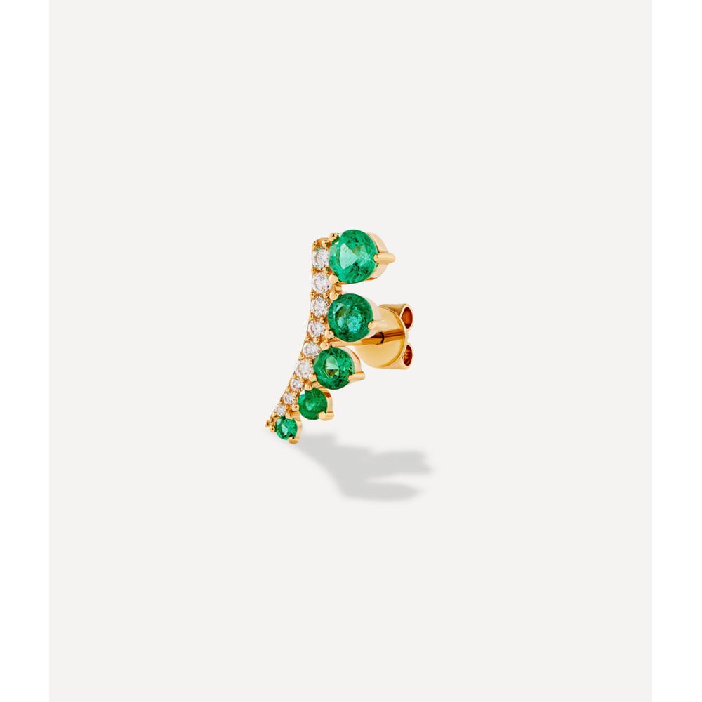 Brinco único drops emerald em ouro amarelo 14kt. Este brinco possui esmeraldas e diamantes 0.100ct em lapidação brilhante.