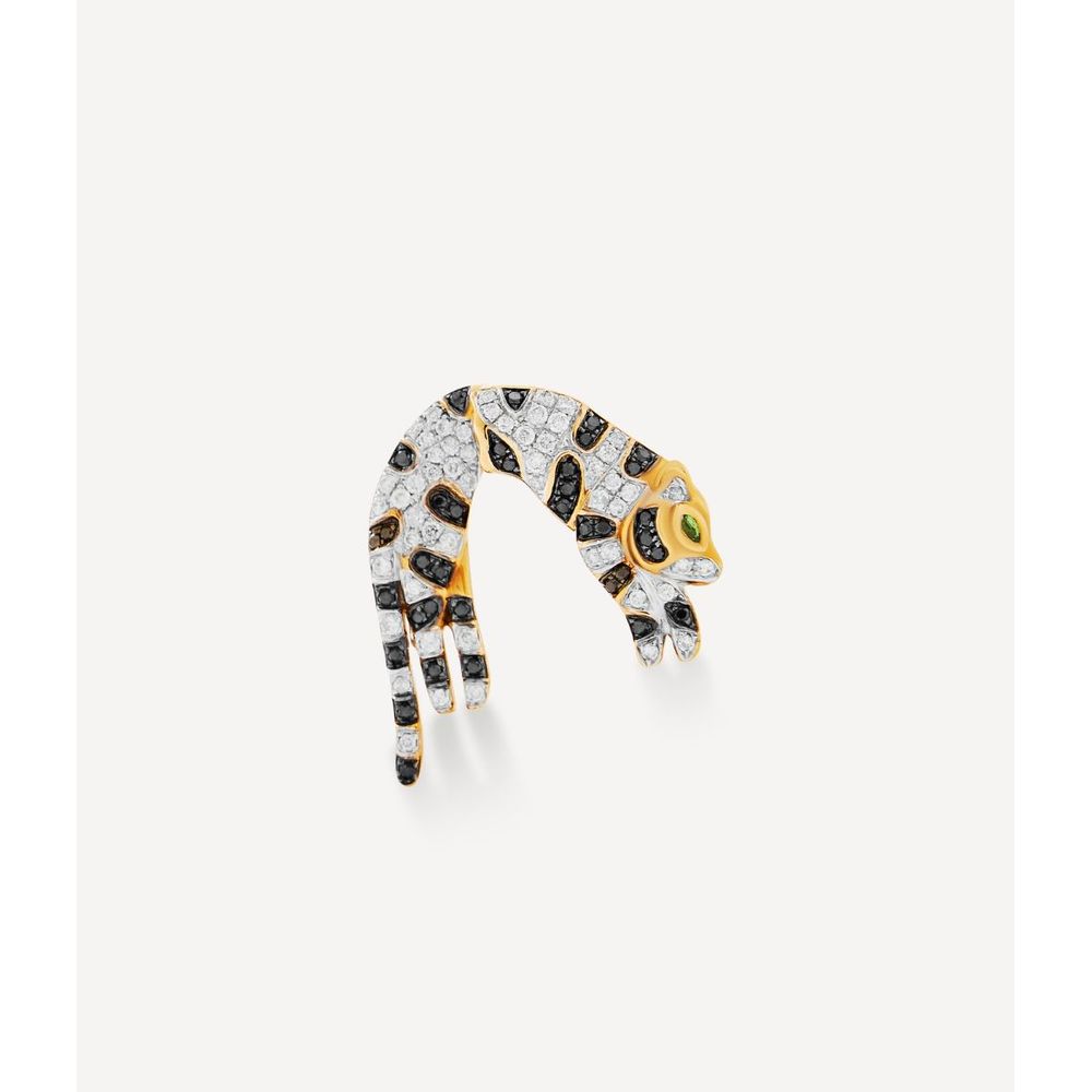 Brinco único Yvonne Léon earpiece felin petit de ouro amarelo 9kt. Possui diamante negro 0.130ct, tsavorita 0.010ct e diamantes 0.210ct.