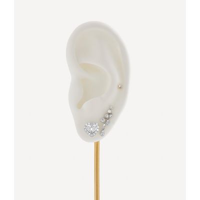 Brinco único floating em ouro amarelo 14kt. Este brinco possui safira rosa 0.31ct em lapidação coração e diamante 0.11ct em lapidação gota.