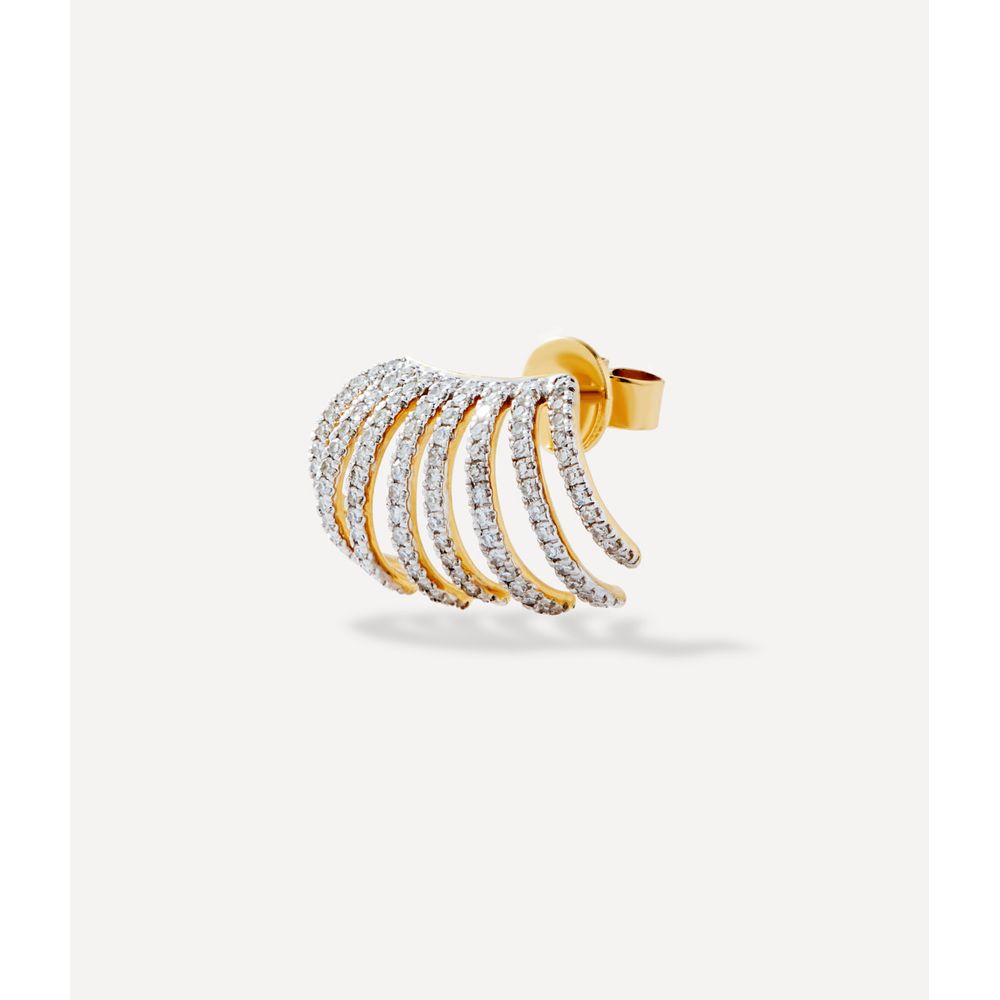 Brinco único multiple row em ouro amarelo 14kt. Este brinco possui diamantes 0.300ct em lapidação brilhante.