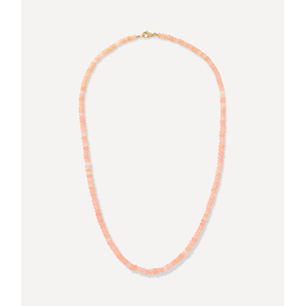 Colar beads opala rosa disco em ouro amarelo 18kt. Tem 40cm.