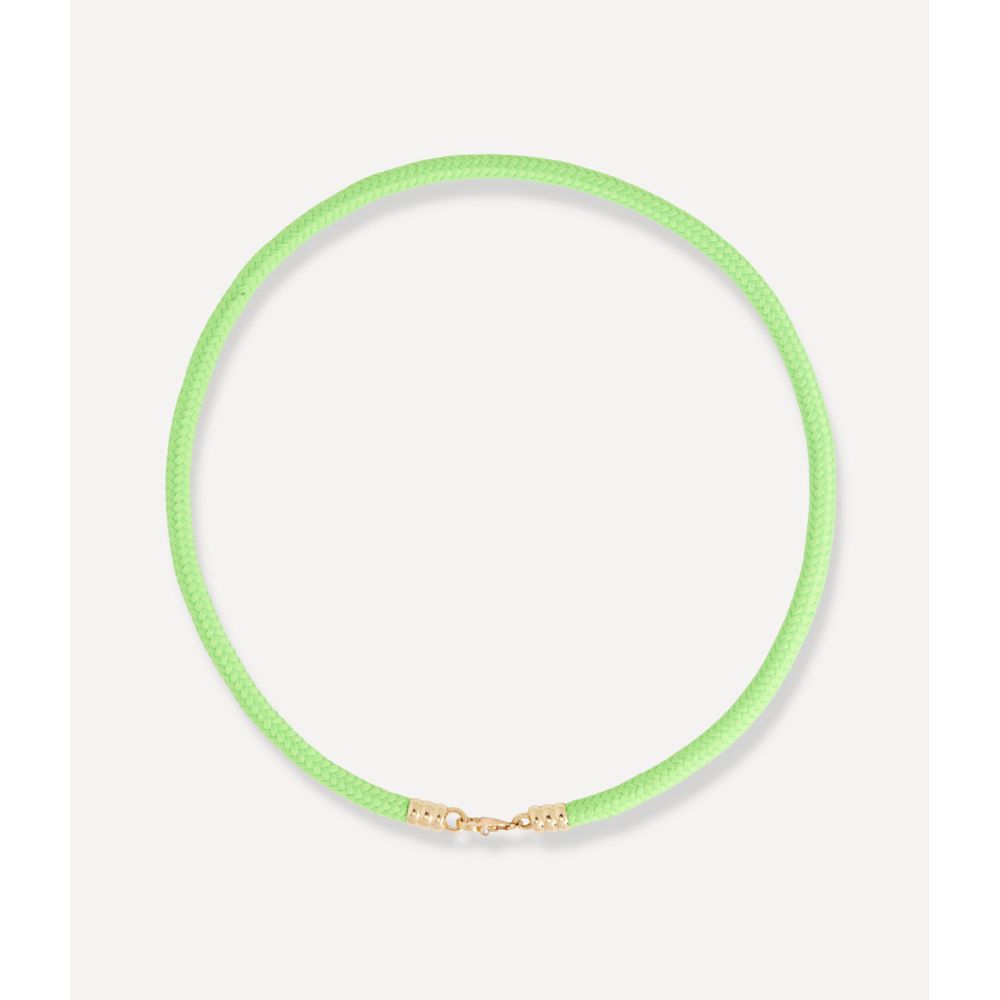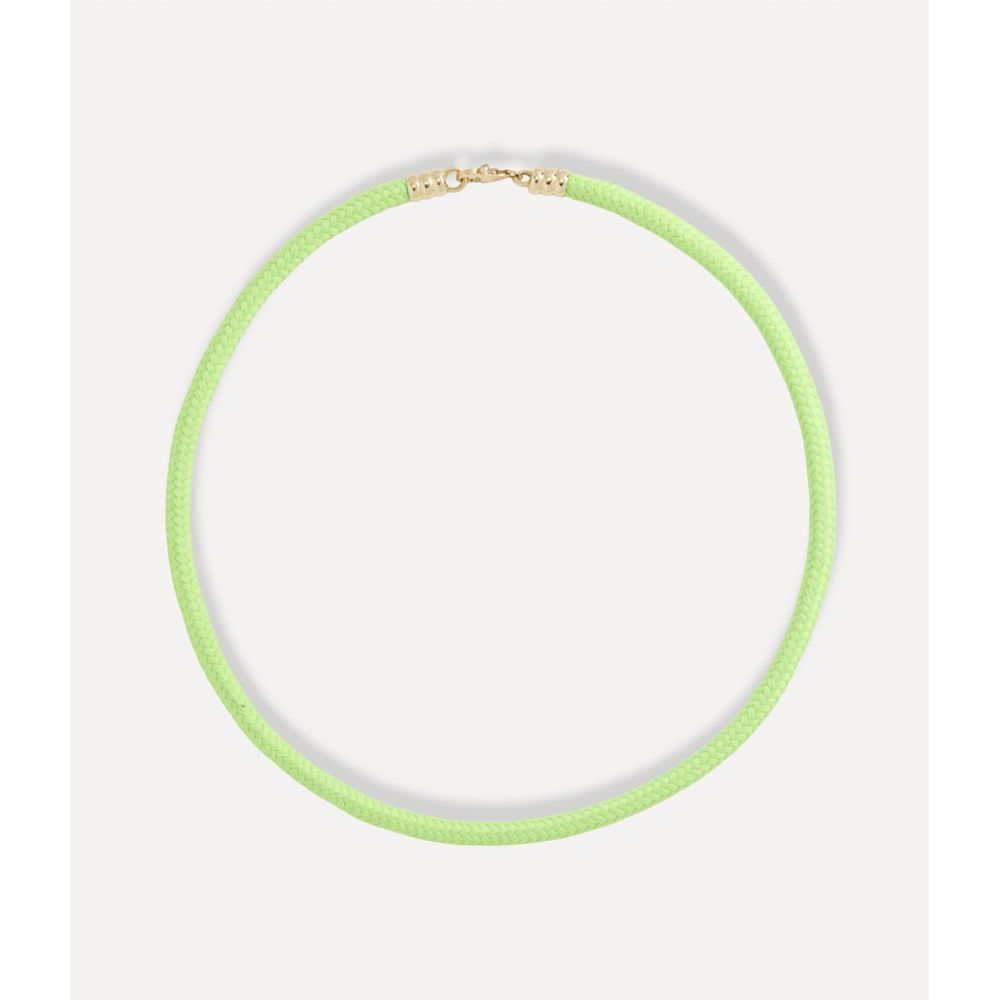 Colar choker parthenope necklace green. Este colar é produzido em tecido. Possui fecho em ouro amarelo 14kt com detalhe de diamante 0.010ct. Tem 40cm.