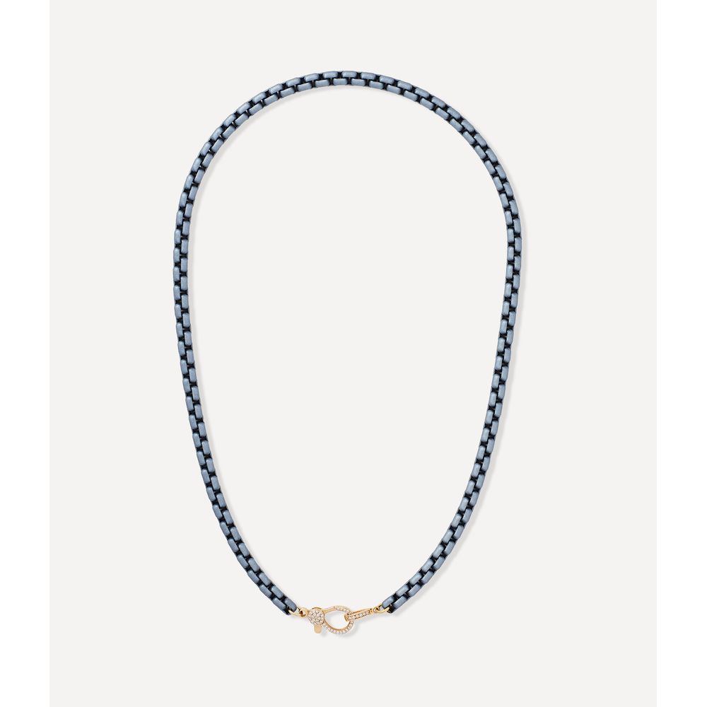 Colar corrente graffiti chains grey pearl em aço. Este colar possui fecho em ouro amarelo 14kt e diamantes 0.240ct em lapidação brilhante. Tem 44cm.