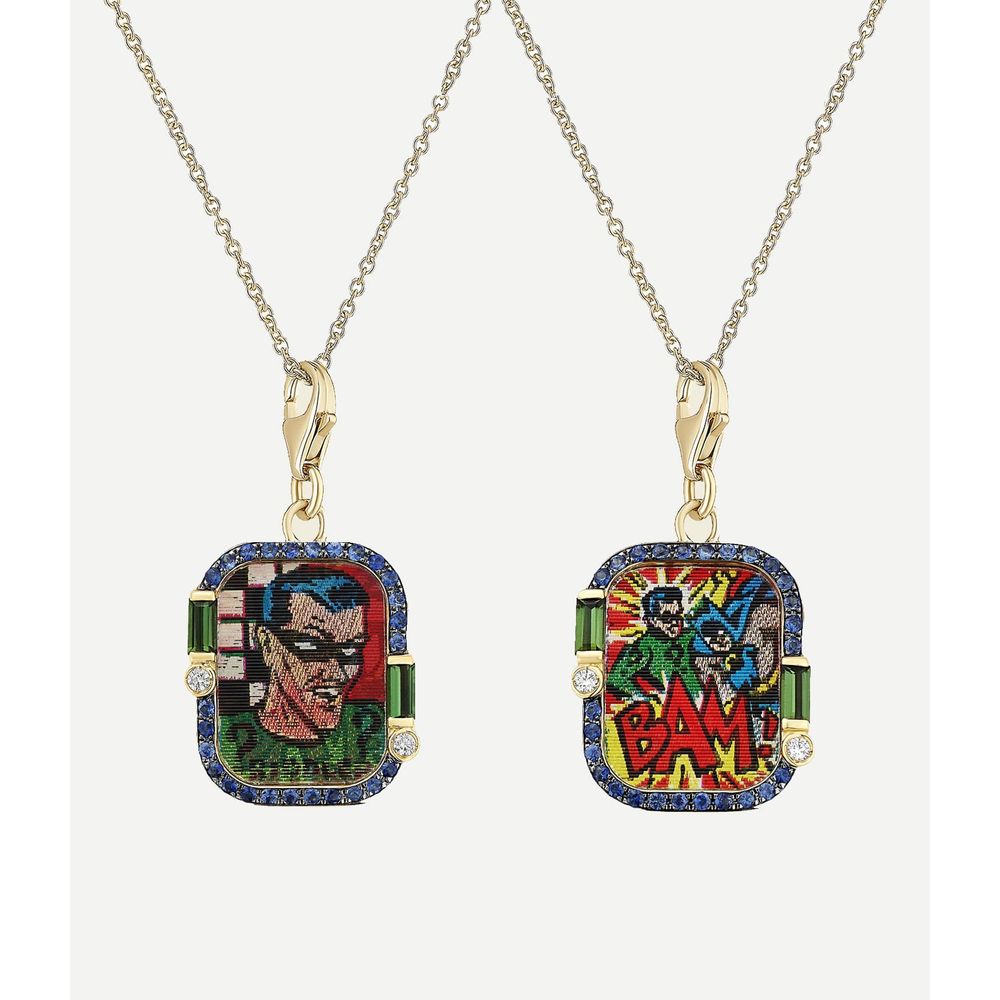 Colar Francesca Villa bam necklace em ouro amarelo 18kt. Esta corrente possui diamantes 0.030ct, safiras azuis 0.260ct e turmalinas verde 0.240ct em lapidação brilhante.