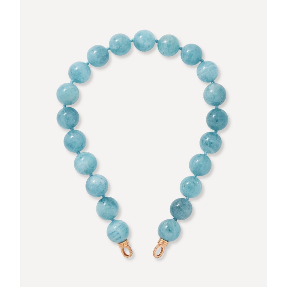 Colar jumbo beads acqua de pedra água marinha. Este colar possui fecho em ouro rosa 14kt com diamantes 0.315ct. Tem 40cm.