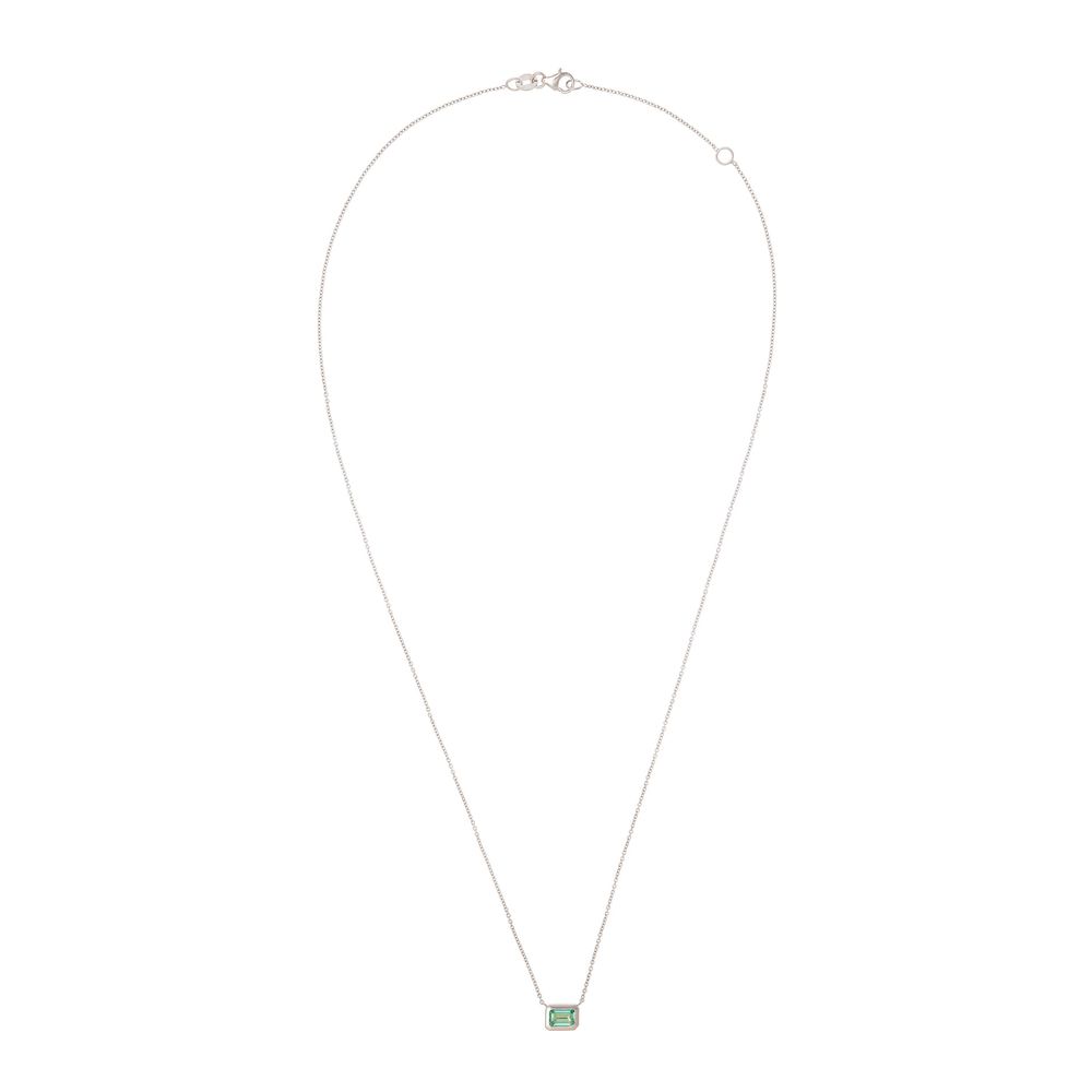 Colar com pingente solitário em ouro branco 18kt. Este colar pendente possui turmalina paraíba 0.43ct em lapidação esmeralda. Tem 45cm e 2 contra argolas, sendo possível ajustar o tamanho em até 3.5cm.