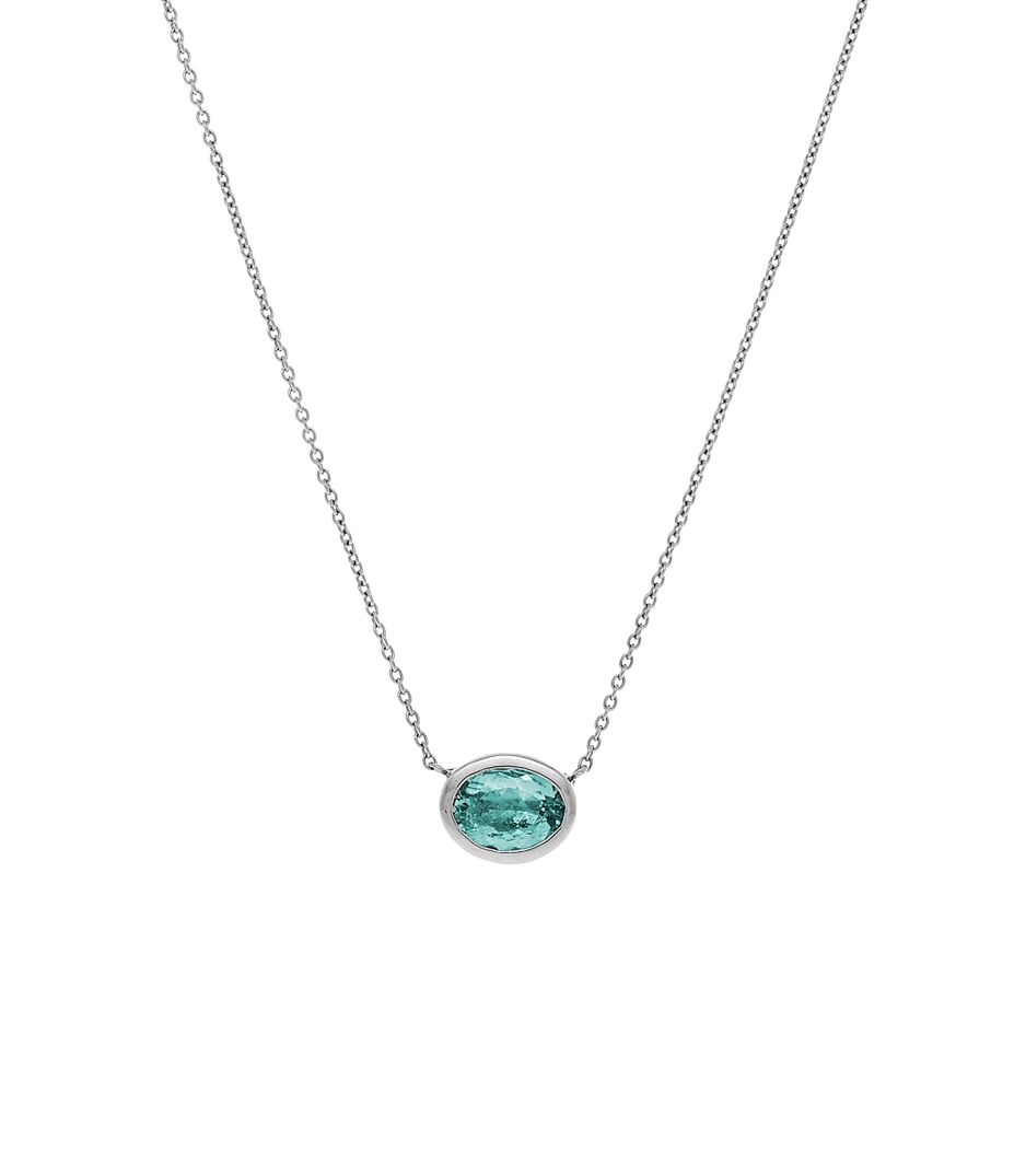 Colar pendente solitário de ouro branco com turmalina paraíba oval - CL100179 - TAMANHO 45