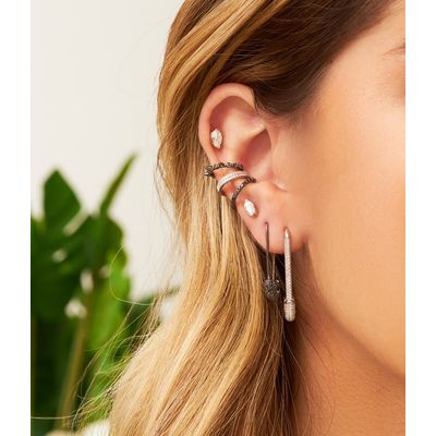 Piercing de encaixe em ouro branco 18kt. Este piercing conch possui diamantes negros 0.12ct em lapidação brilhante.