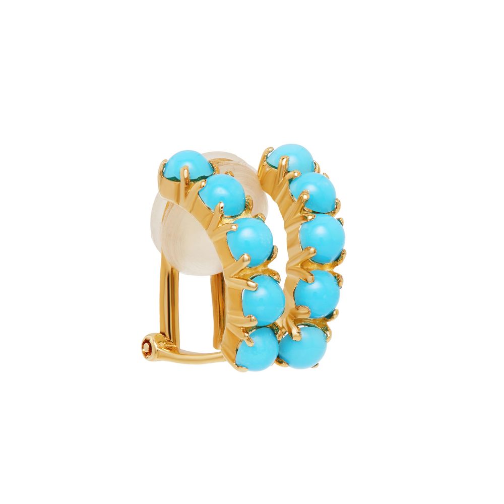 Piercing de encaixe em ouro amarelo 18kt. Este piercing conch possui turquesas em lapidação redonda.