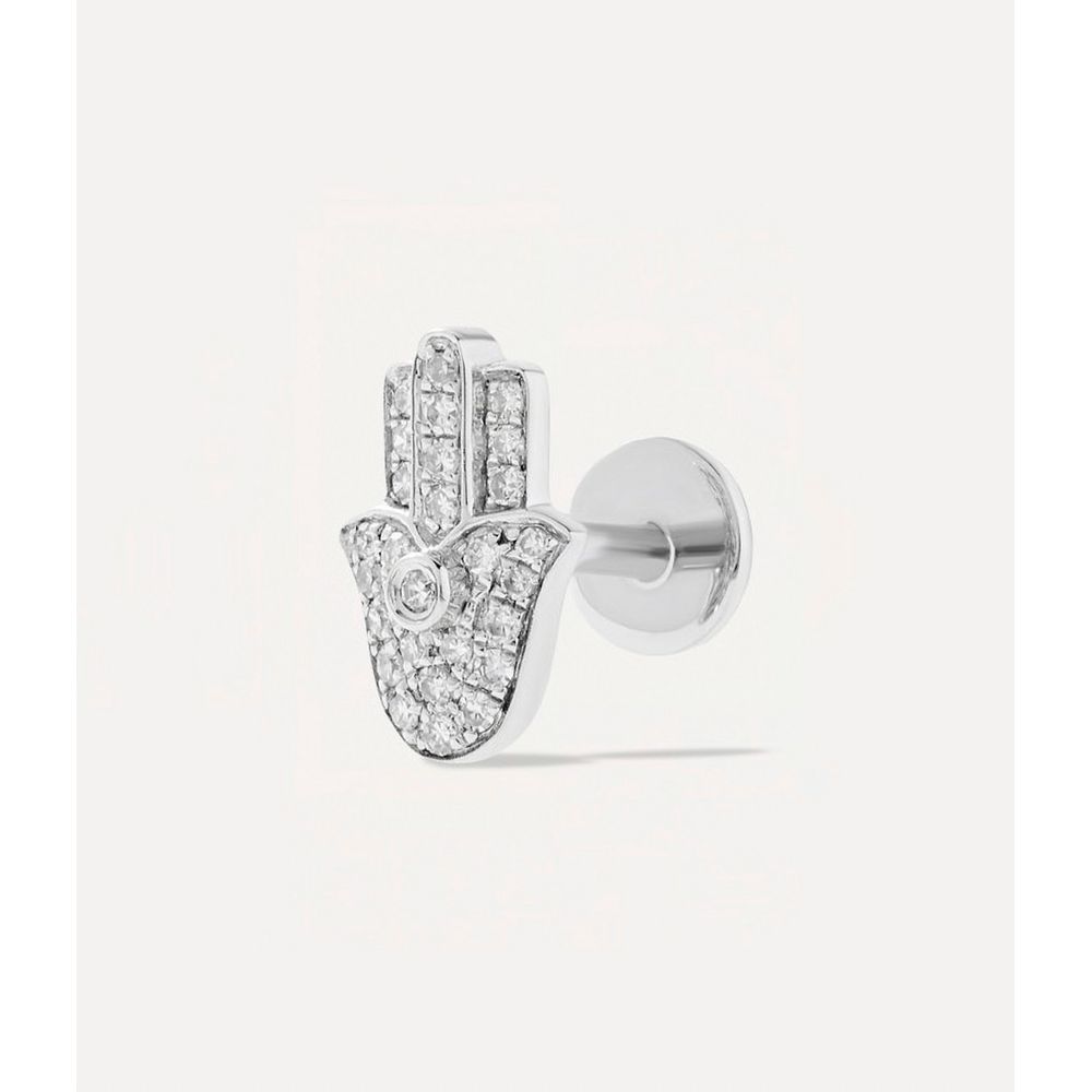 Piercing de tarraxa diamond hamsa de ouro branco - BR101784 - BRINCO UNICO