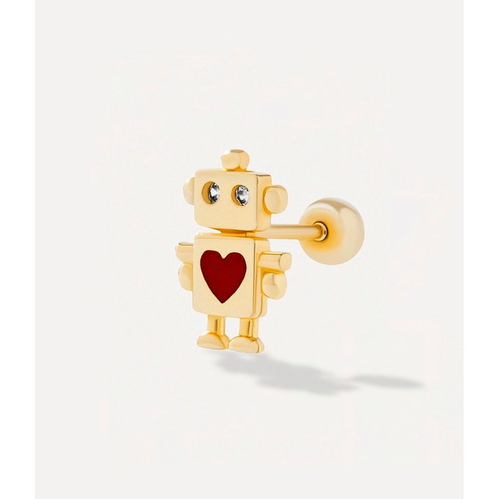 Piercing de tarraxa ia love robot de ouro - BR201425 - BRINCO UNICO