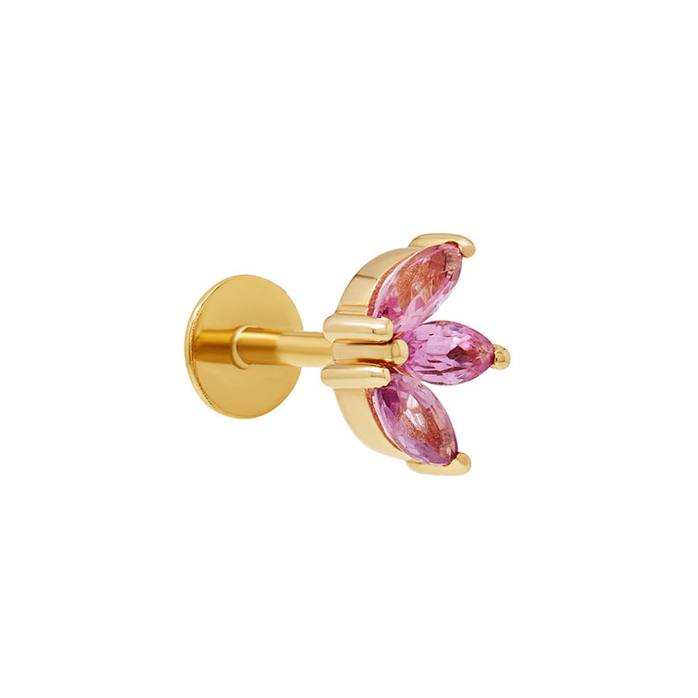 Piercing de tarraxa lótus de ouro com safiras rosa - BR200772 - BRINCO UNICO