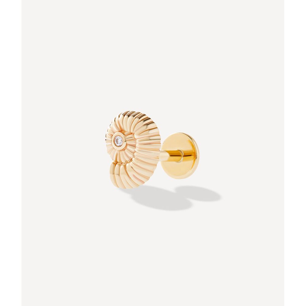 Piercing de tarraxa summer shell em ouro amarelo 14kt. Este piercing possui diamante 0.10ct em lapidação brilhante.