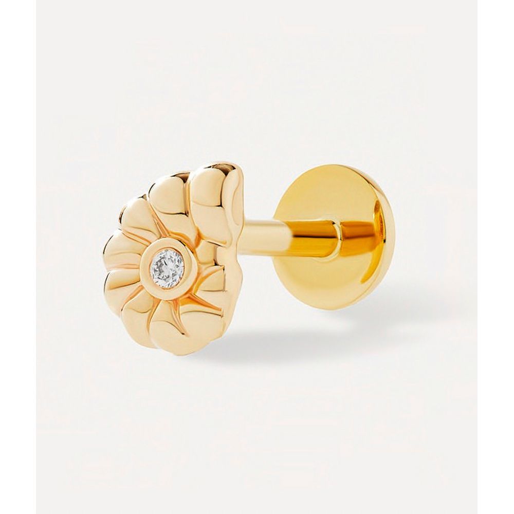 Piercing de tarraxa the beach shell em ouro amarelo 14kt. Este piercing possui diamante 0.10ct em lapidação brilhante.