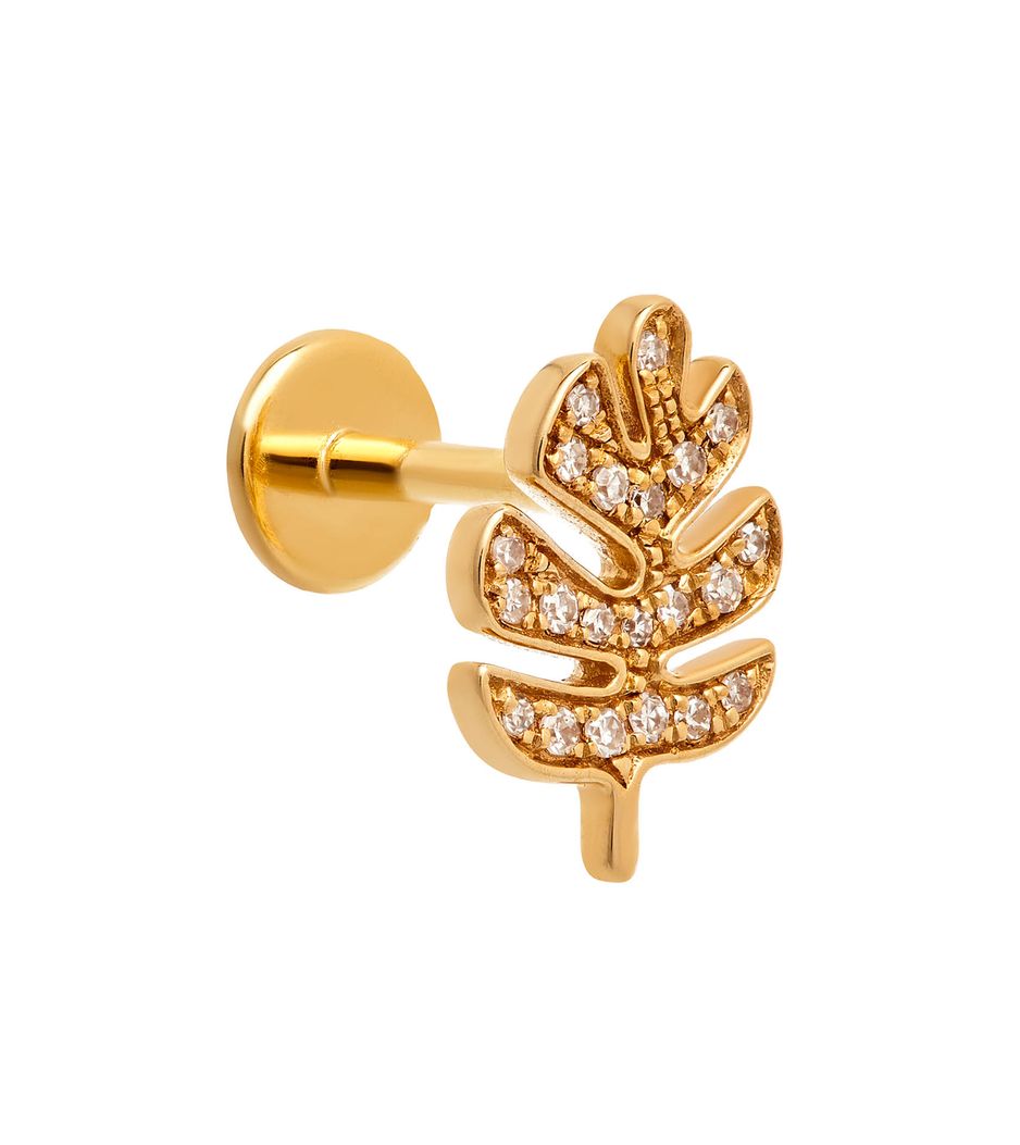 Piercing de tarraxa tropical vibe de ouro com brilhantes - BR200994 - BRINCO UNICO