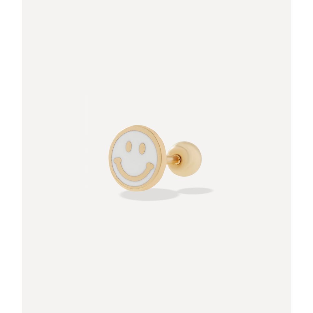 Piercing de tarraxa white mini happy piercing de ouro - BR201438 - BRINCO UNICO