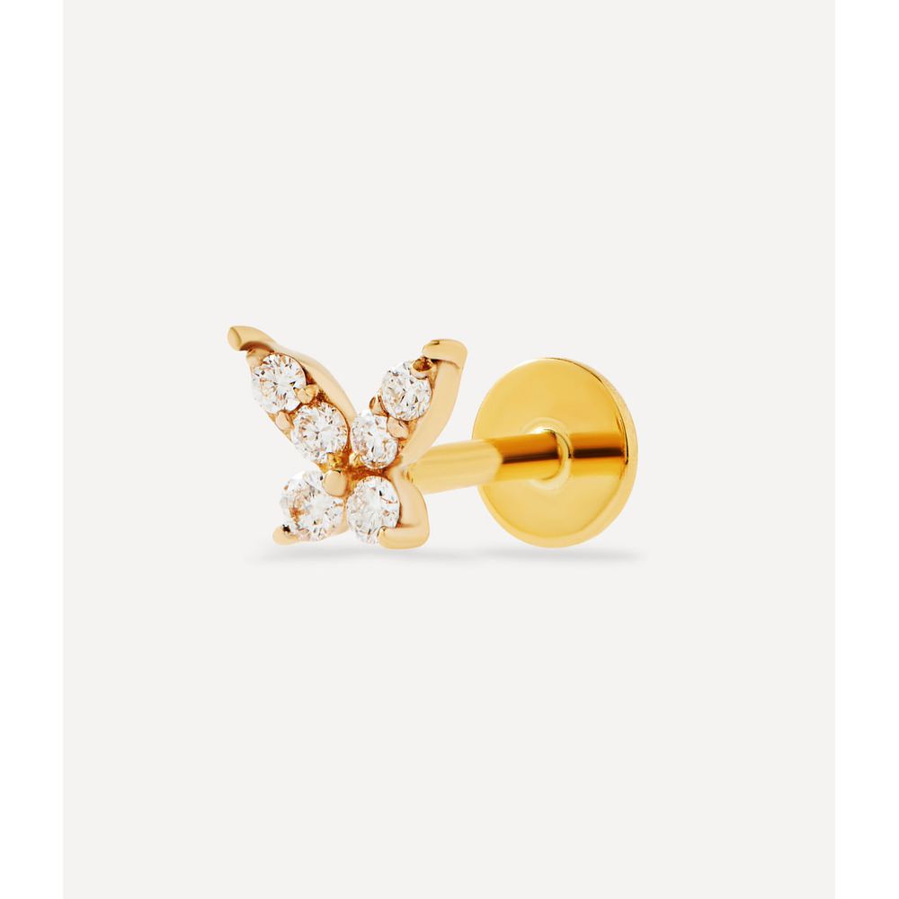 Piercing diamond butterfly em ouro amarelo 14kt. Este piercing possui 0.90ct diamantes em lapidação brilhante.
