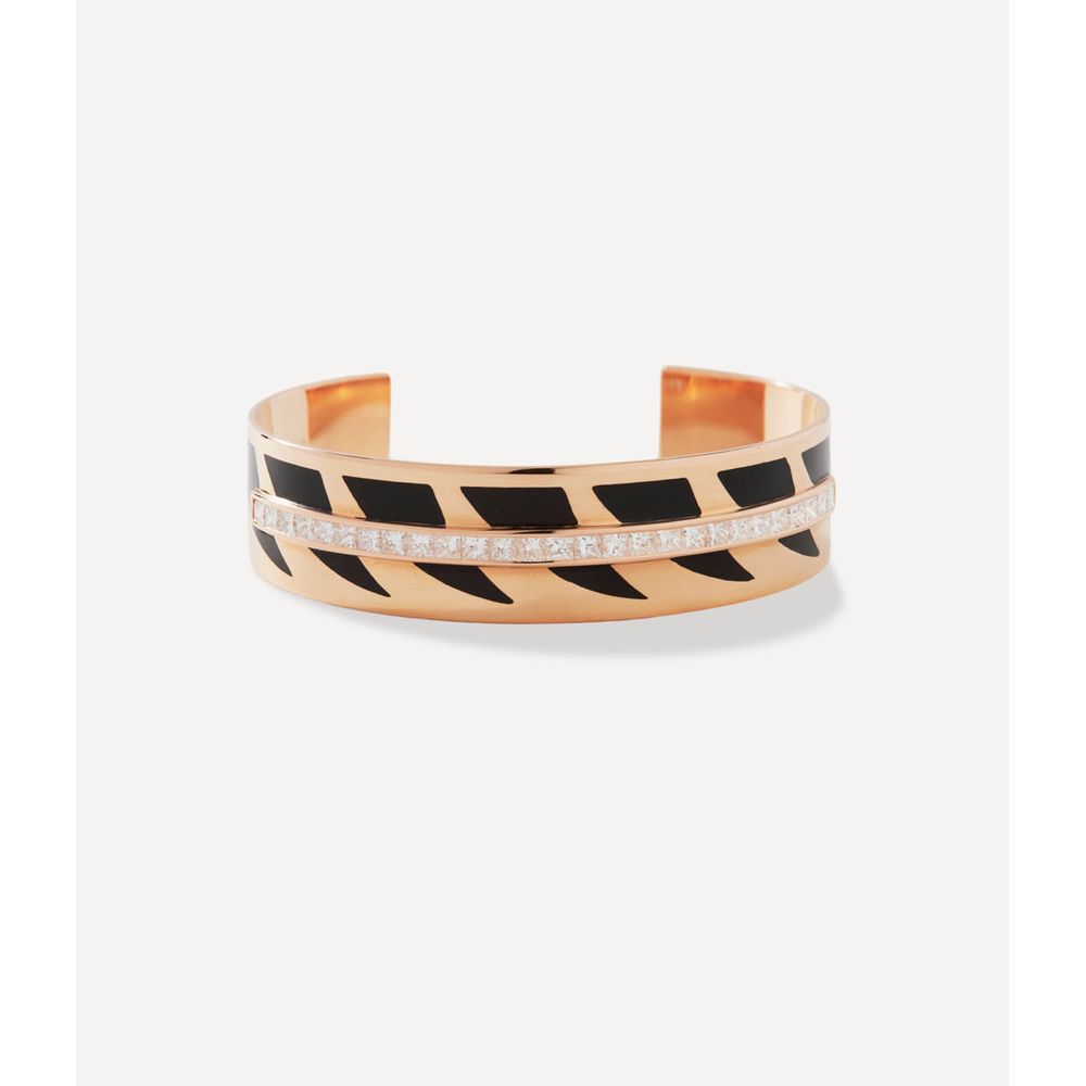 Pulseira bracelete Dezso deco shark fin de ouro rosa com diamantes - PL300081 - UNICO