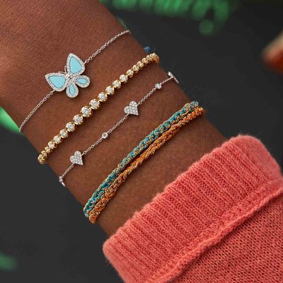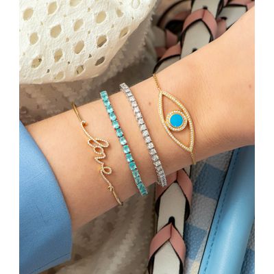 Pulseira evil eye de ouro rosa com safiras e brilhantes PL300042 - TAMANHO 17 |