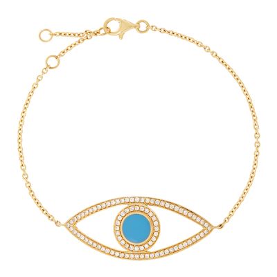 Pulseira evil eye em ouro rosa 14kt. Esta pulseira de olho grego possui safiras e diamantes em lapidação brilhante. Tem 17cm e 2 contra argolas sendo possível ajustar o tamanho.