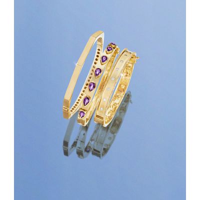 Pulseira rígida de ouro rosa com diamantes baguete PL300068 - UNICO |
