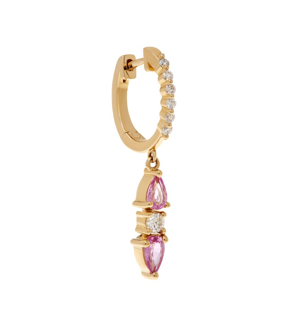 Brinco argola único de ouro com safiras rosa e brilhantes - BR200770 - BRINCO UNICO