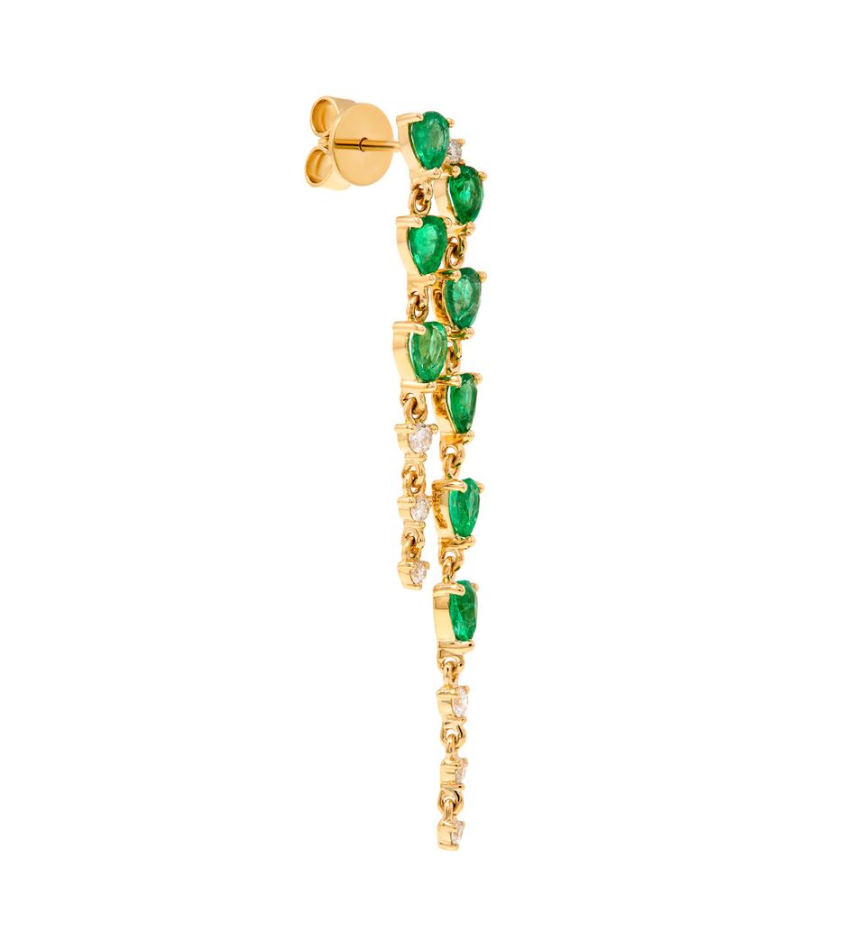 Brinco único dripping de ouro com esmeraldas e brilhantes - BR200779 - BRINCO UNICO